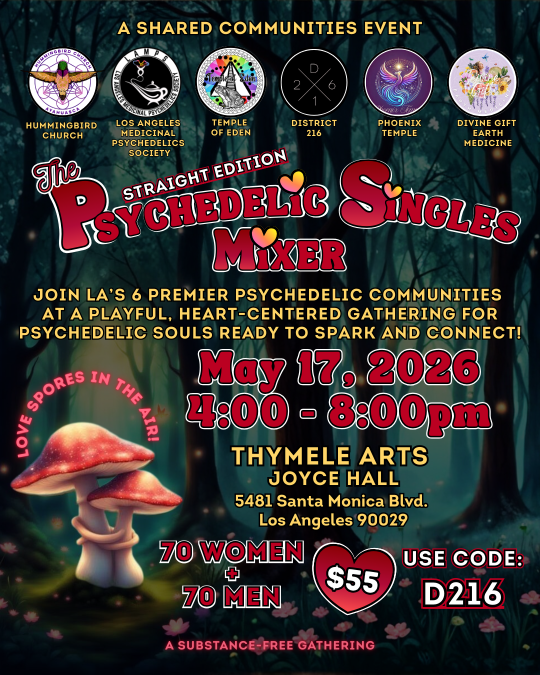 Join LA’s 6 premier psychedelic communities—gathering from near and far—for a playful, heart-centered evening designed for psychedelic souls ready to spark and connect.
